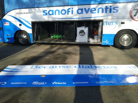 Last year’s team bus saw Team BMC attempt to raise some enthusiasm about the rather drab prospect of being merely a ‘research team’. Even adding the word “excitement” didn’t really succeed in making the phrase seem anything other than a corporate-style motto, though. However, the team’s results were anything but drab, with Cadel Evans picking up a slew of big stage race titles, including the big one. I didn’t see a lot of the other riders but I’m sure they picking up the slack in the research department. Maybe the big names BMC has brought in can add to the excitement and research this season.